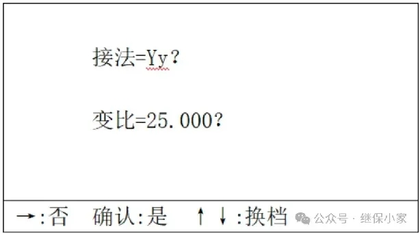3.每按“↑”鍵一次,變比增加25.000×5%,即1.25。每按“↓”鍵一次,變比減少1.25。新的標(biāo)準(zhǔn)變比直接顯示在屏上,按確認(rèn)鍵,即可測(cè)量出結(jié)果。