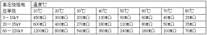 1. 油浸變壓器的絕緣電阻,如無(wú)特殊規(guī)定時(shí),一般要符合下表的規(guī)定: