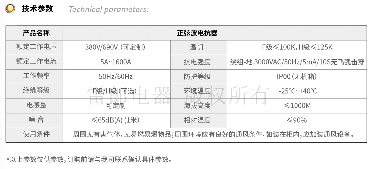正弦波電抗器的作用是將變頻輸出的PWM波轉(zhuǎn)換成正弦波。在電機(jī)電壓為50Hz時(shí),使用正弦波濾波器其畸變系數(shù)約為5%(部分品牌的變頻器應(yīng)用后,畸變率會(huì)大于此數(shù)據(jù))。